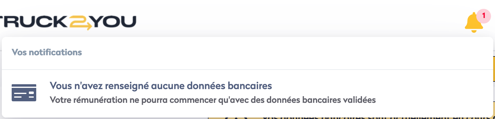 Tant que vous n'avez pas fourni vos coordonnées bancaires, une notification s'affiche dans la barre de menu :