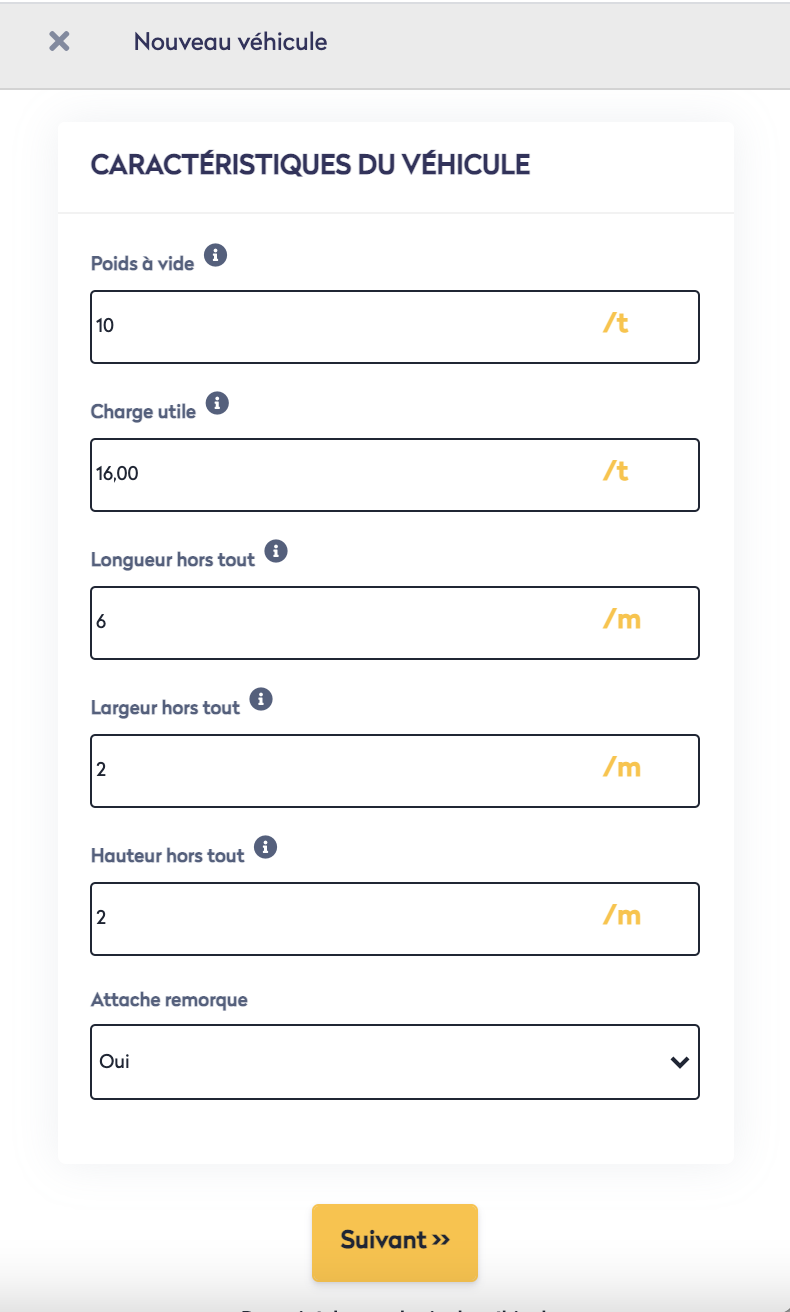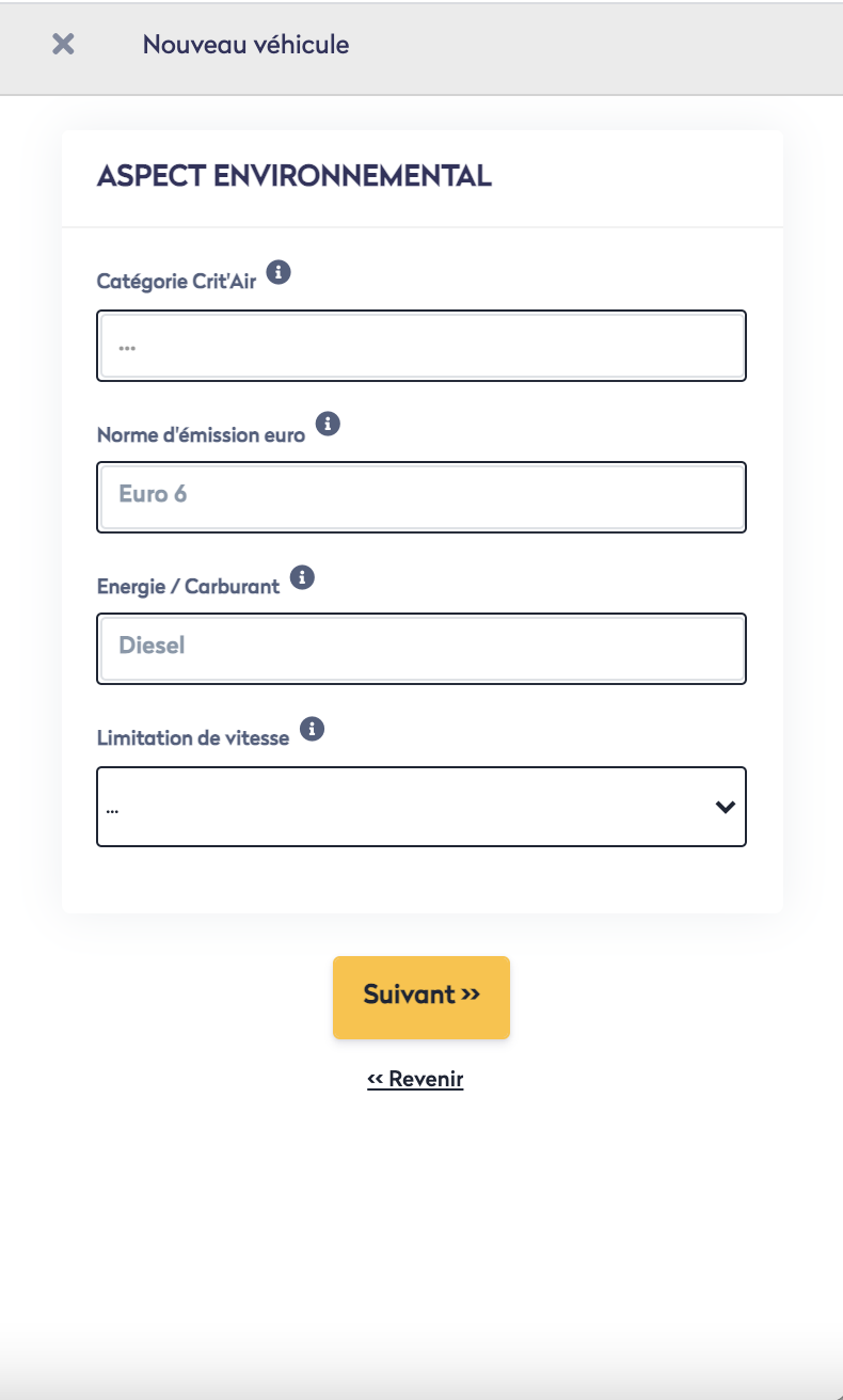Vous allez alors saisir progressivement les caractéristiques de votre véhicules, page par page :