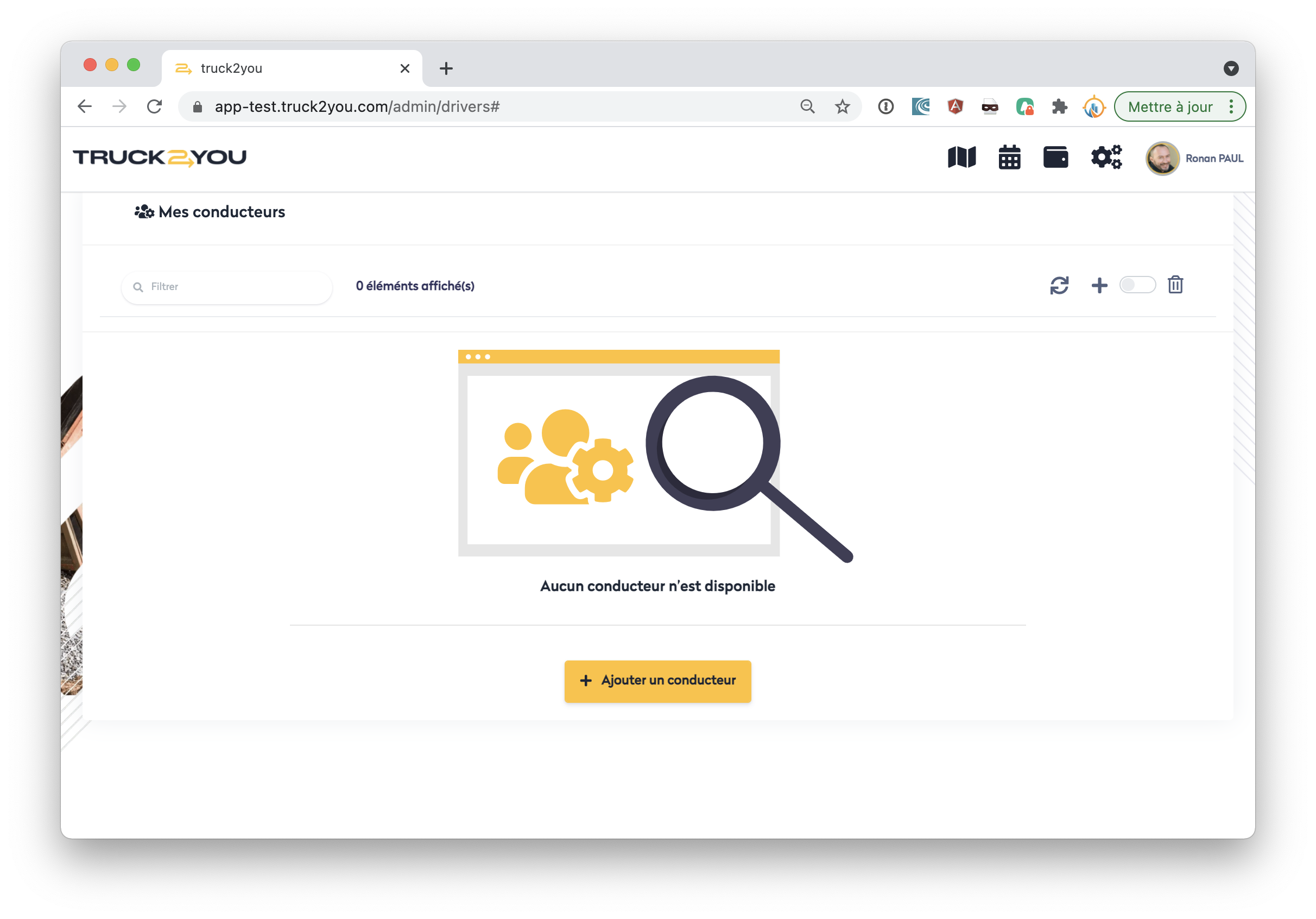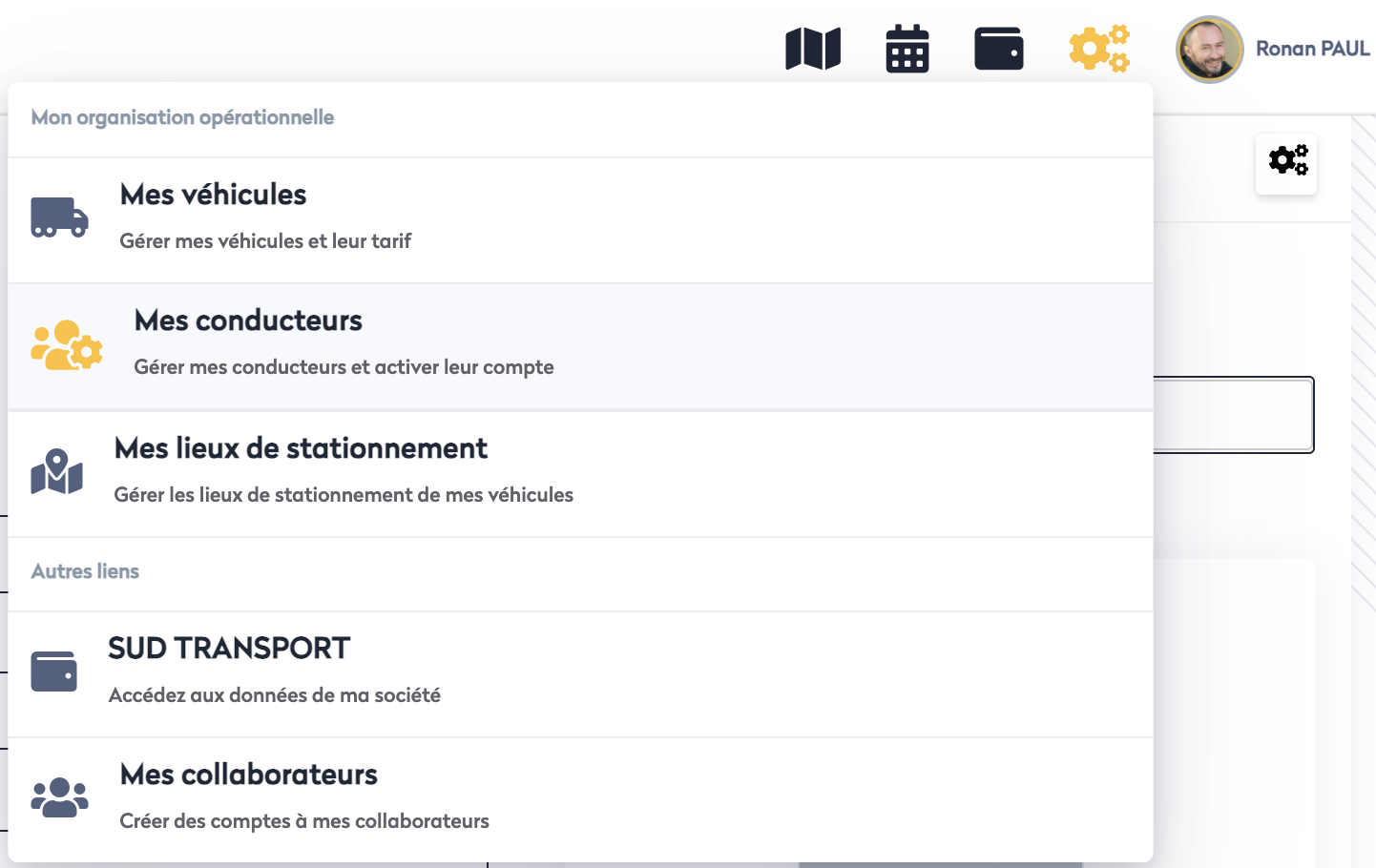 Afin de gérer pleinement votre activité sur Truck2You, vous devez créer des comptes pour vos conducteurs.