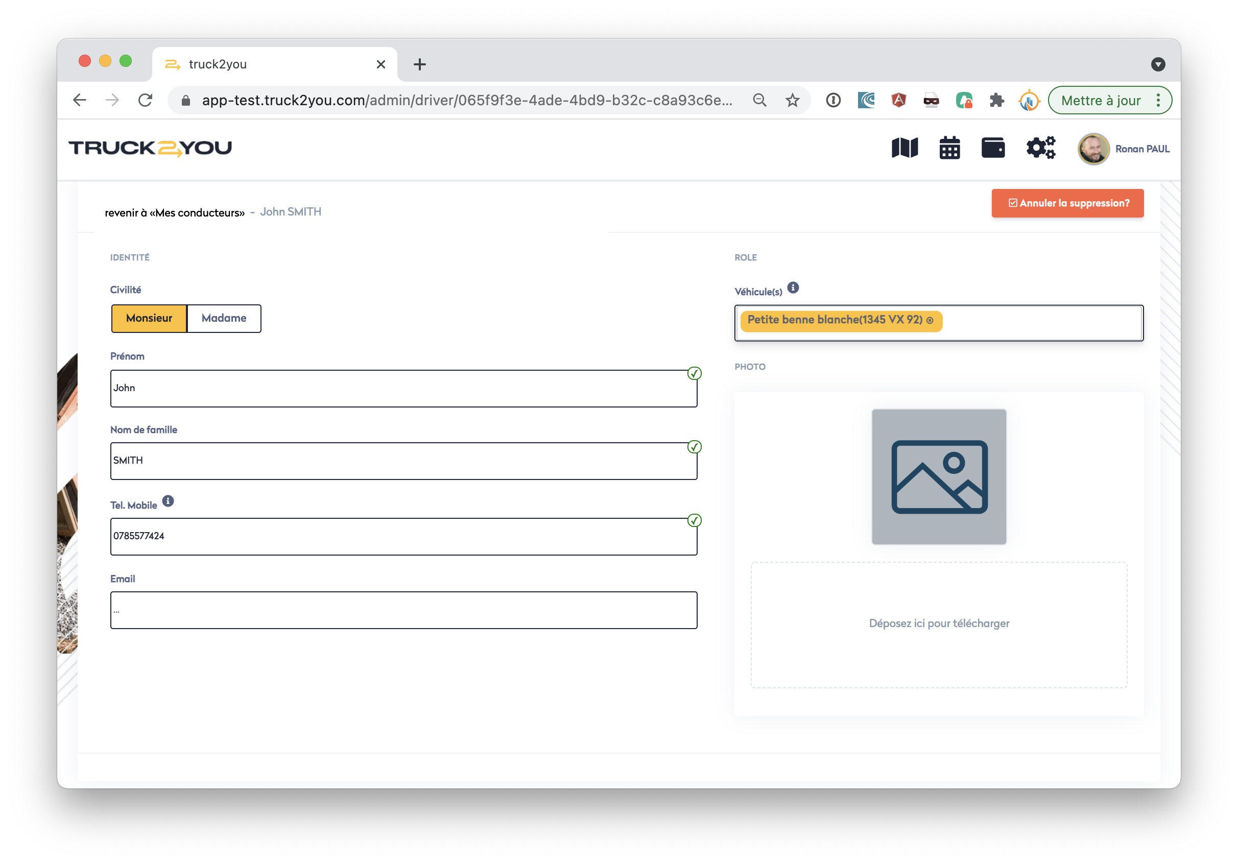 - Cela ouvre la fiche conducteur, que vous pouvez modifier :