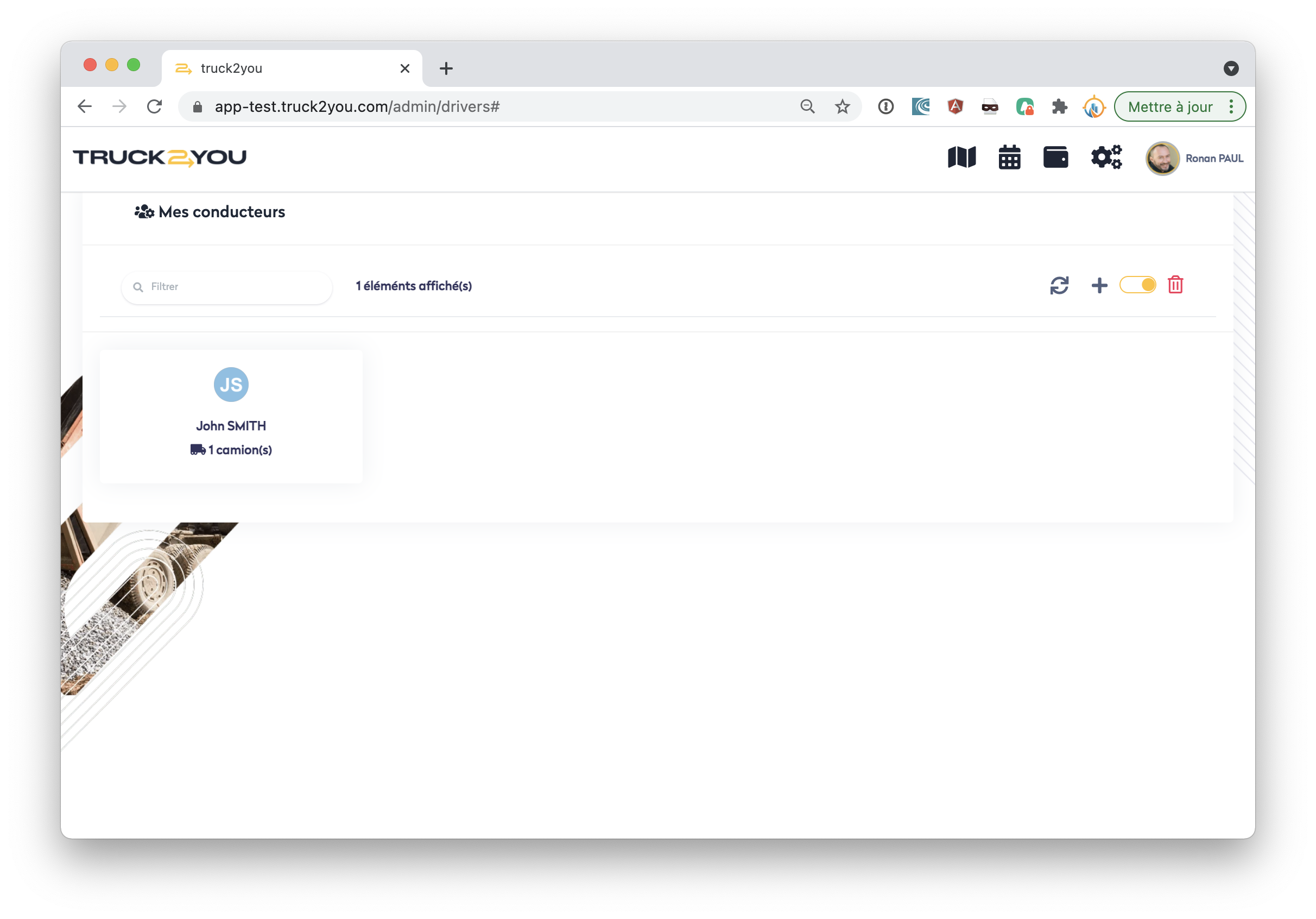 Afin de gérer pleinement votre activité sur Truck2You, vous devez créer des comptes pour vos conducteurs. Attention : les comptes "Conducteurs" permettent uniquement de gérer les opérations de transport. Pour un rôle d'organisation ou de suivi des ...
