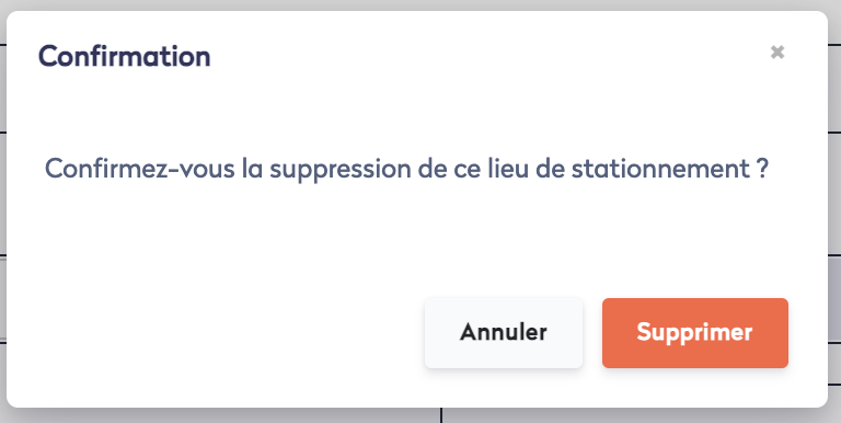 Il est possible de supprimer un site de stationnement en suivant cette procédure à partir d'une fiche "site de stationnement" :