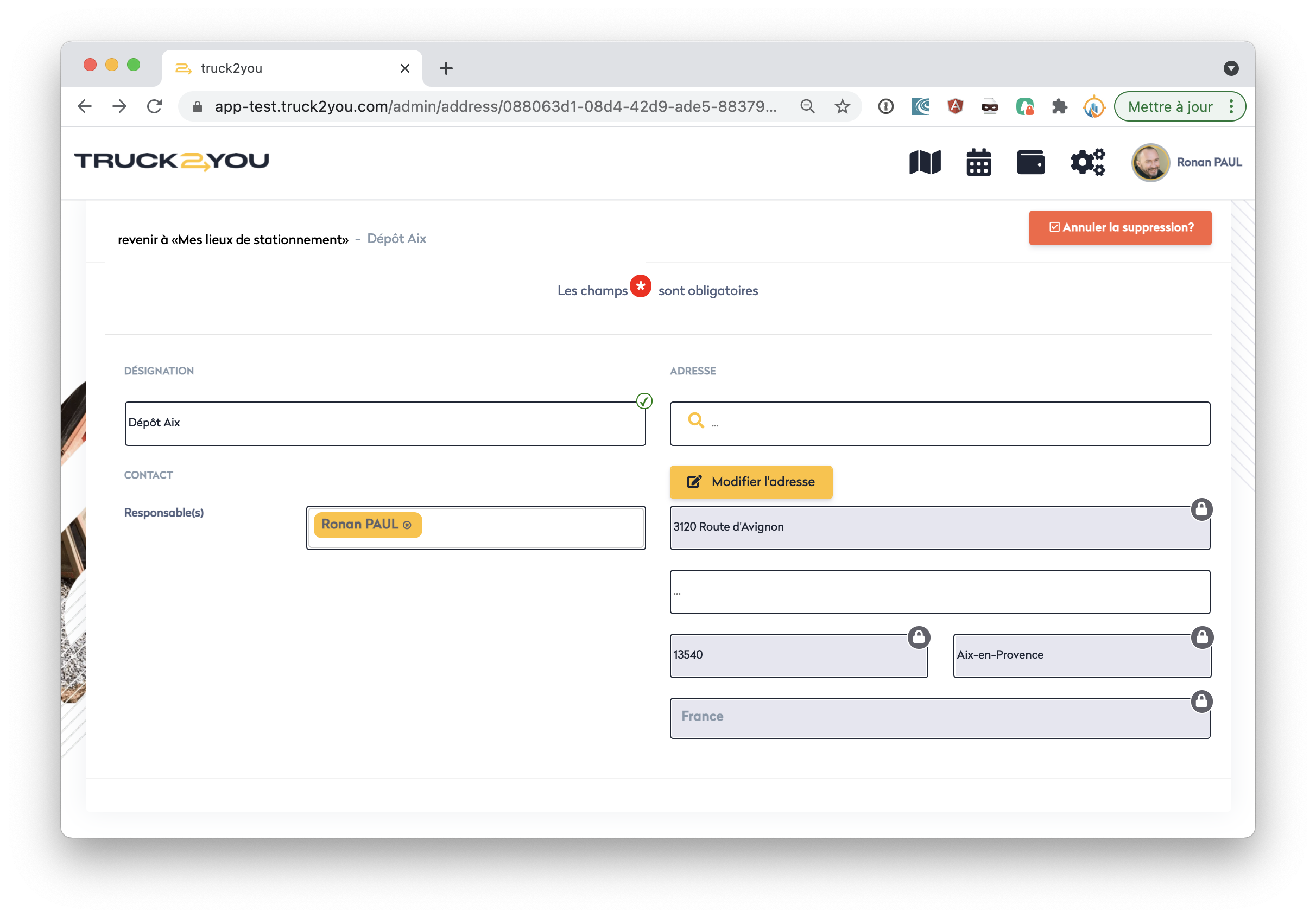 Modifier / Supprimer un site de stationnement