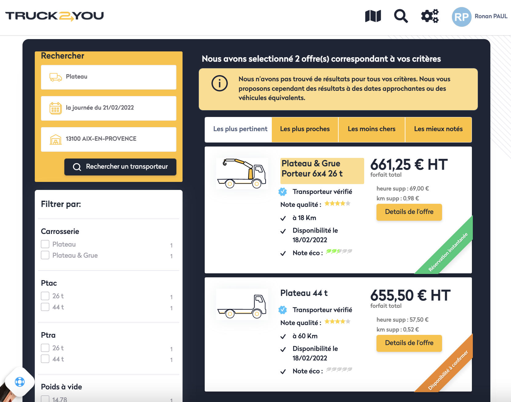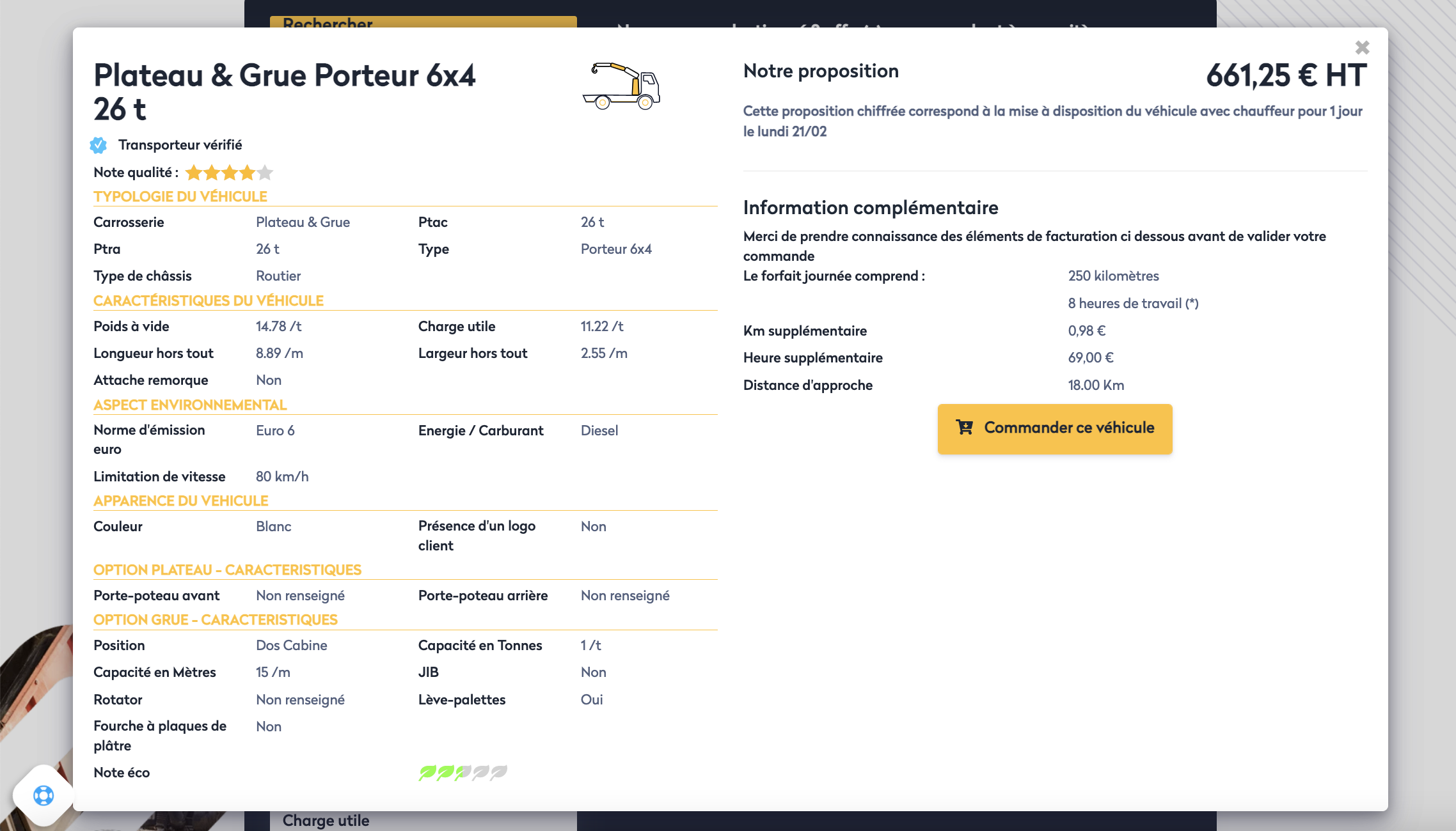- Validation manuelle : nous devons vérifier la disponibilité du véhicule auprès du transporteur