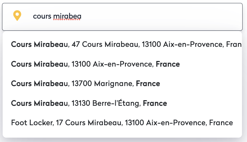 - Saisie d'adresse : tapez le début de votre adresse et choisissez parmi les propositions
