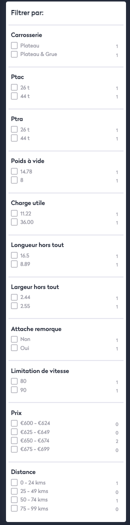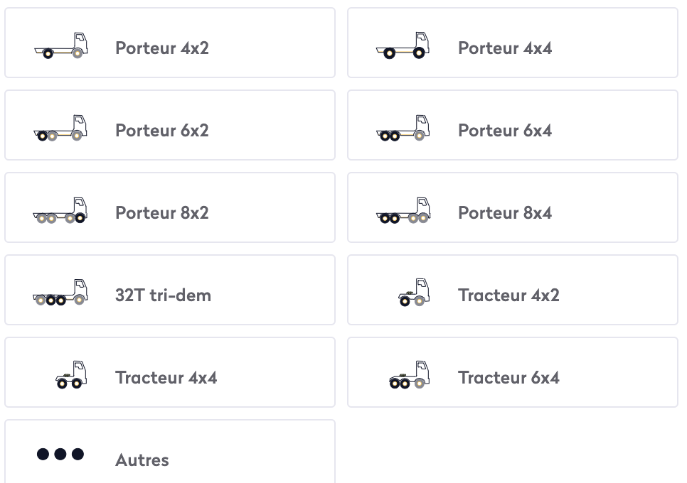 - Type de véhicule : type de véhicule précis, incluant le options et le PTAC