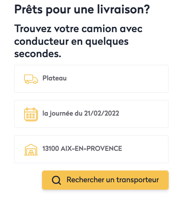 Dès que vous avez saisi les éléments de votre recherche, vous pouvez la déclencher en cliquant sur le bouton "rechercher un transporteur"