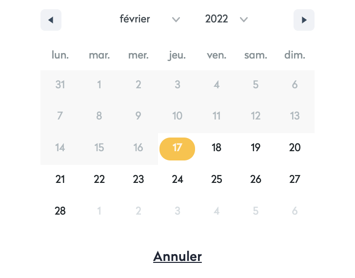 Vous pouvez faire défiler les mois grâce aux flèches situées au-dessus du calendrier.