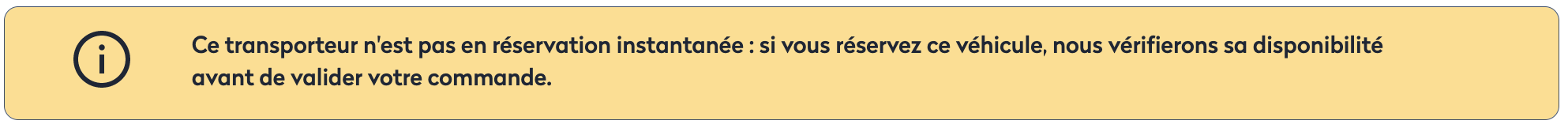 Si le véhicule n'est pas en réservation instantanée, un rappel sera fait dans la page de détails :