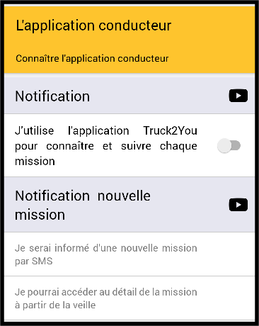 Lorsque toutes les installations sont correctement installées, l'utilisation de l'application Conducteur Truck2You se fait au fil des missions. Une fois que le smartphone a été vérifié via SMS, il n'y a plus besoin de passer par les étapes ...