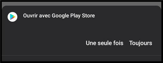 Google Play propose d'ouvrir l'application, sélectionner la préférence "toujours" ou "une seule fois".