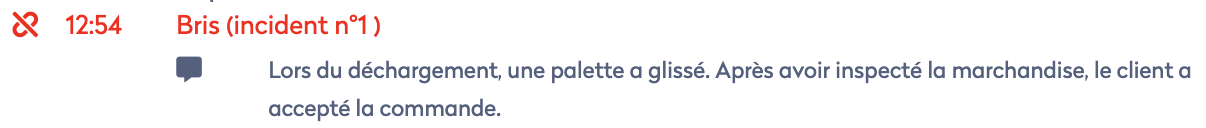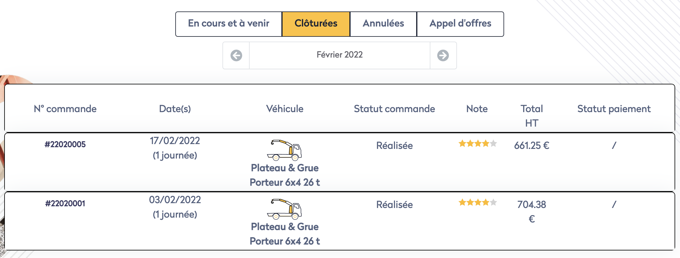 En cliquant sur le résumé d'une commande, les différentes missions qu'elle contient apparaissent :