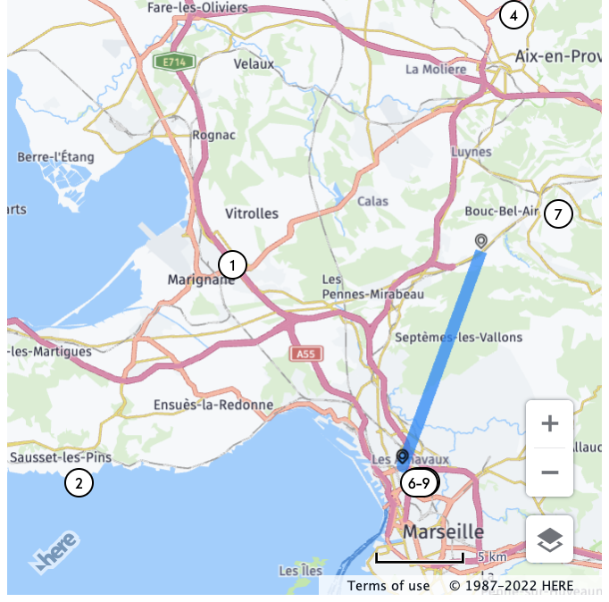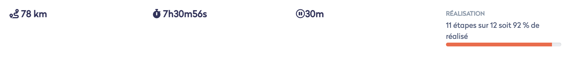 - Bloc "Carte" : vision sur la carte des étapes (numérotées) et de l'itinéraire (traits entre les numéros)