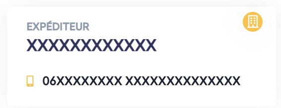 - Bloc "Expéditeur" : nom et numéro (disponible uniquement le jour de la mission, obfusqué avant/après)