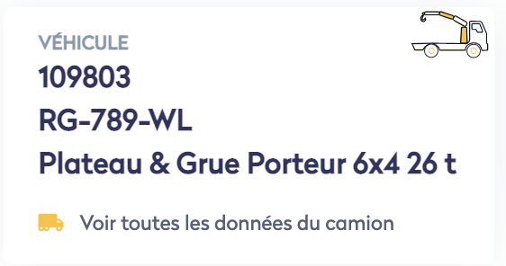- Bloc "Véhicule" : informations sur le véhicule (détail en cliquant sur le lien)