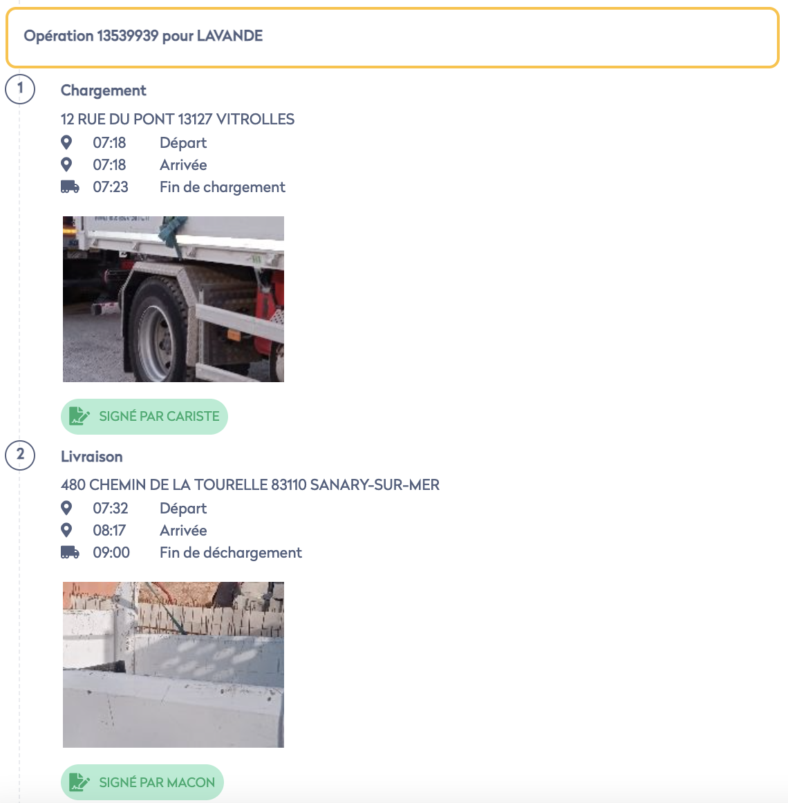 Tout ce qui a été réalisé par le conducteur est affiché au fil de l'eau :