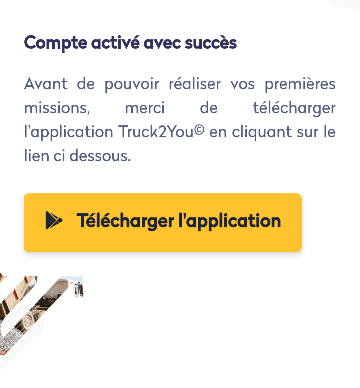 5. En cliquant sur le lien, le compte de votre conducteur est activé et il peut télécharger l'application Truck2You sur son smartphone :