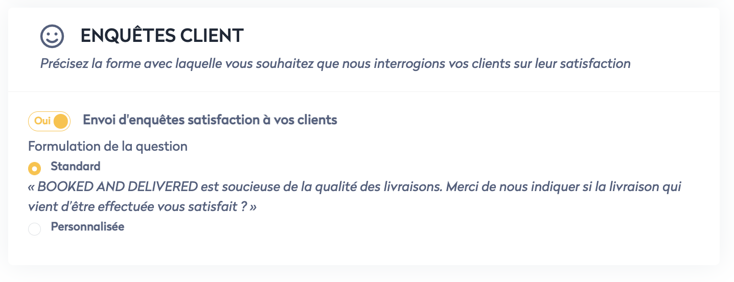 - Indiquez tout d'abord si vous souhaitez que nous interrogions vos clients sur leur satisfaction