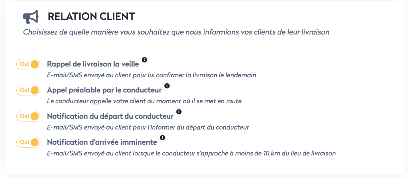 - Appel préalable par le conducteur : Le conducteur appelle votre client au moment où il se met en route