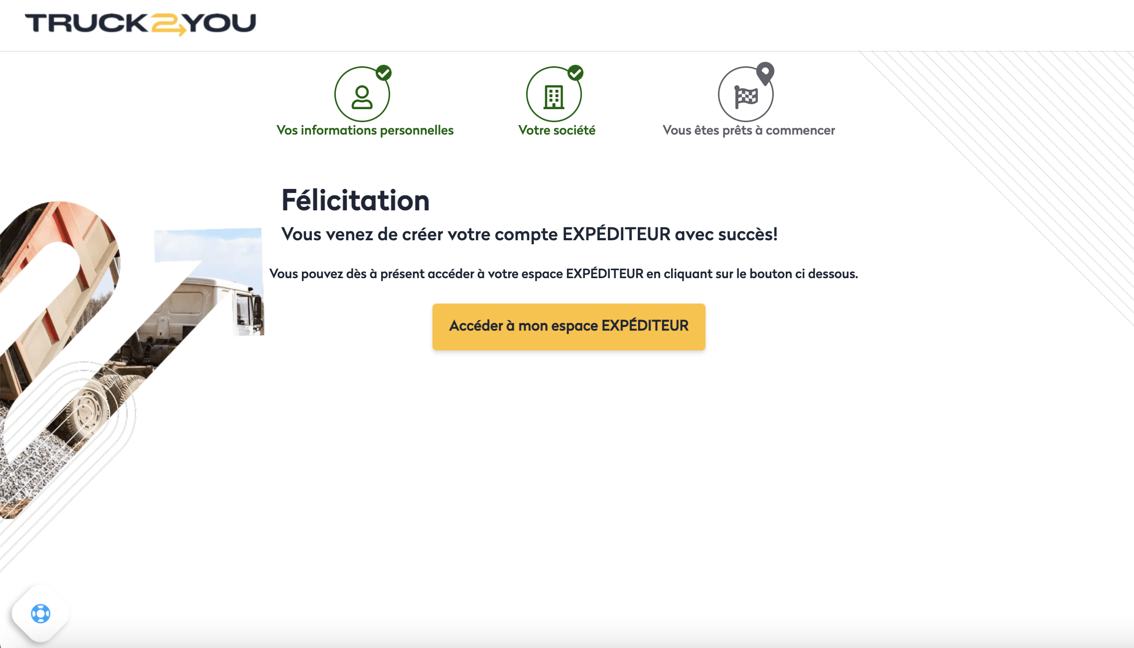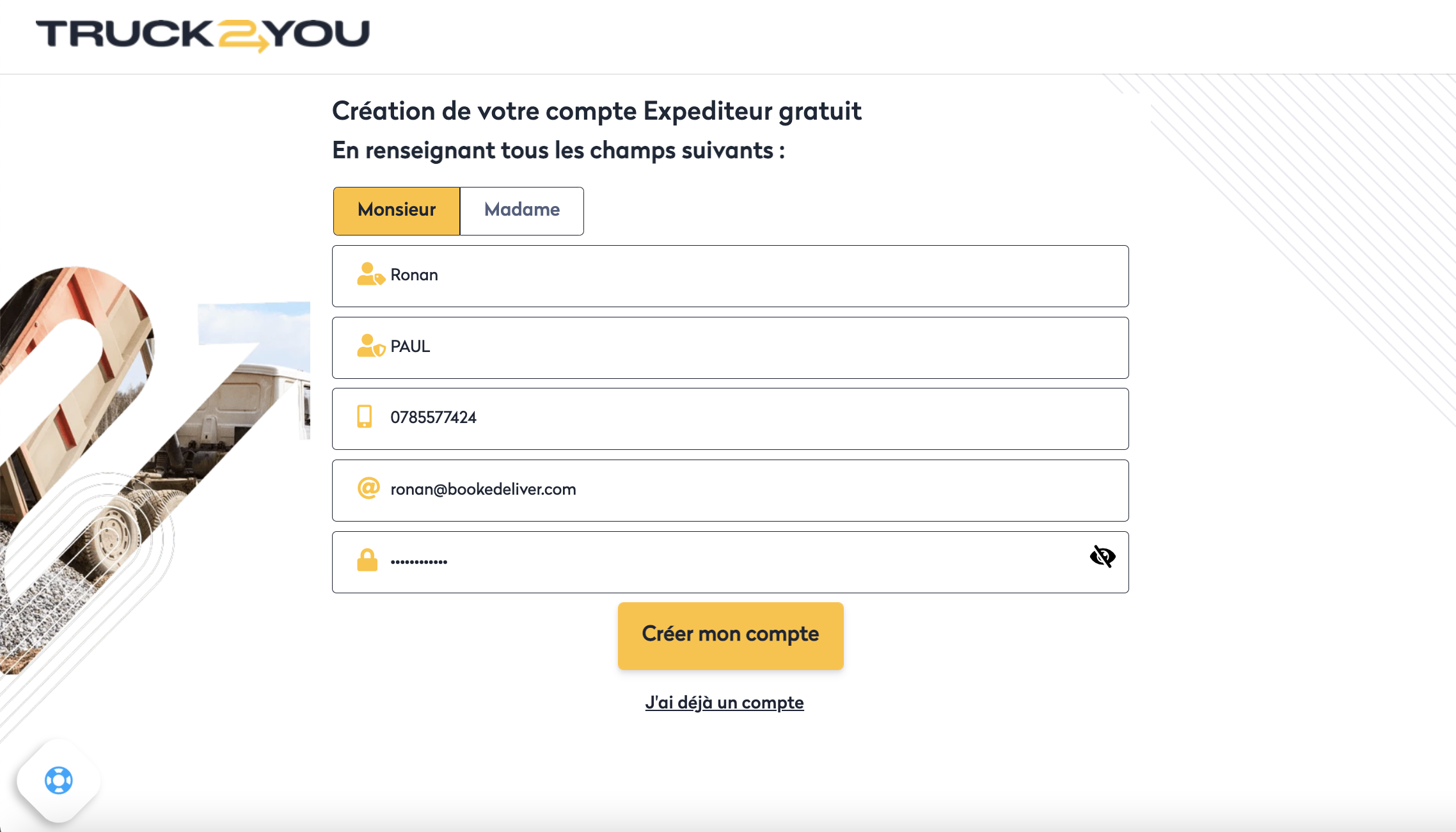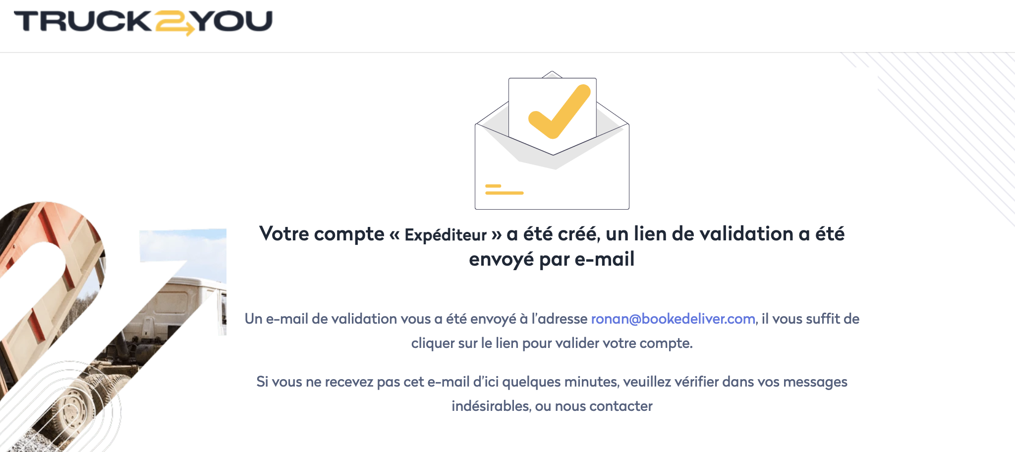 Pour vous inscrire en tant qu'expéditeur sur le service Truck2You, c'est très simple !