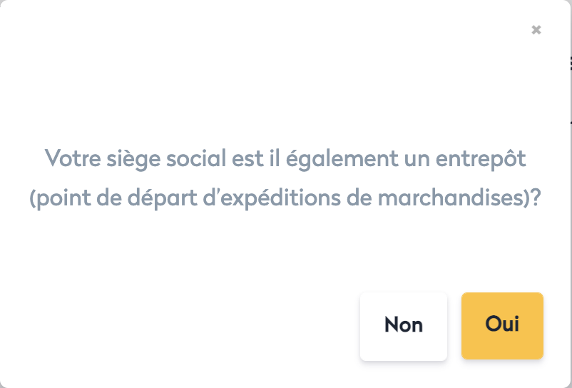 - Répondre à la question : votre siège social est-il un entrepôt / point d'expédition de vos marchandises ?
