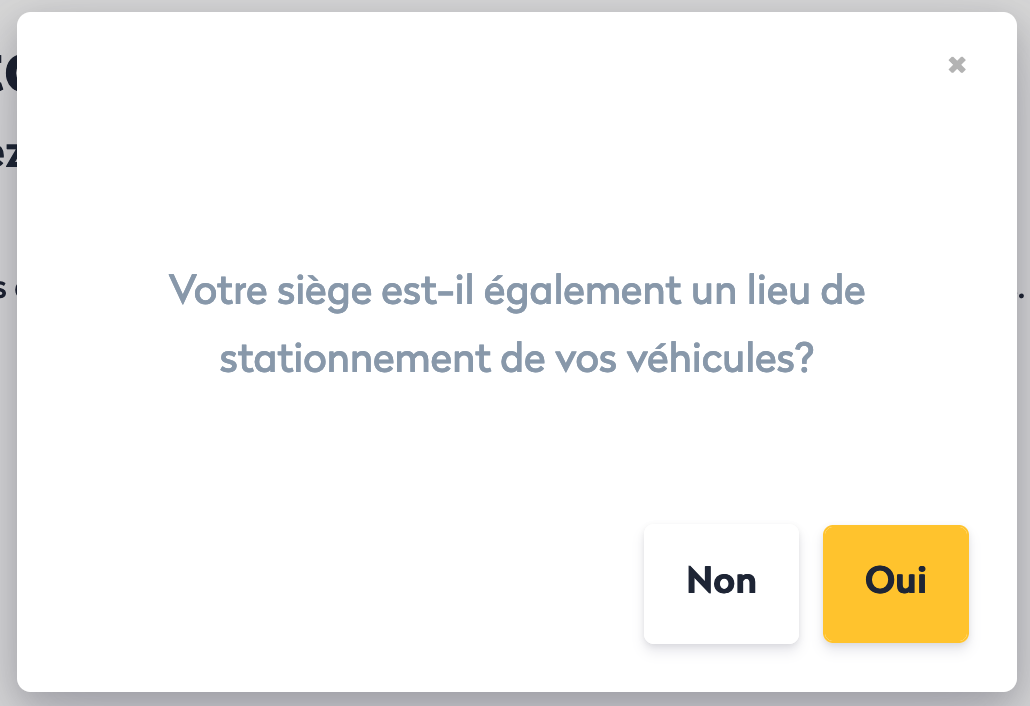 - Répondre à la question : votre siège social est-il un lieu de stationnement de vos véhicules ?