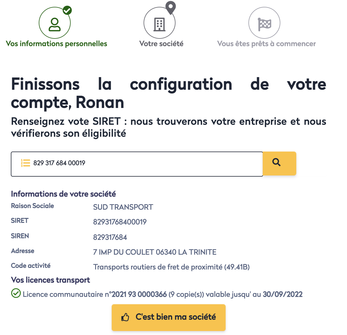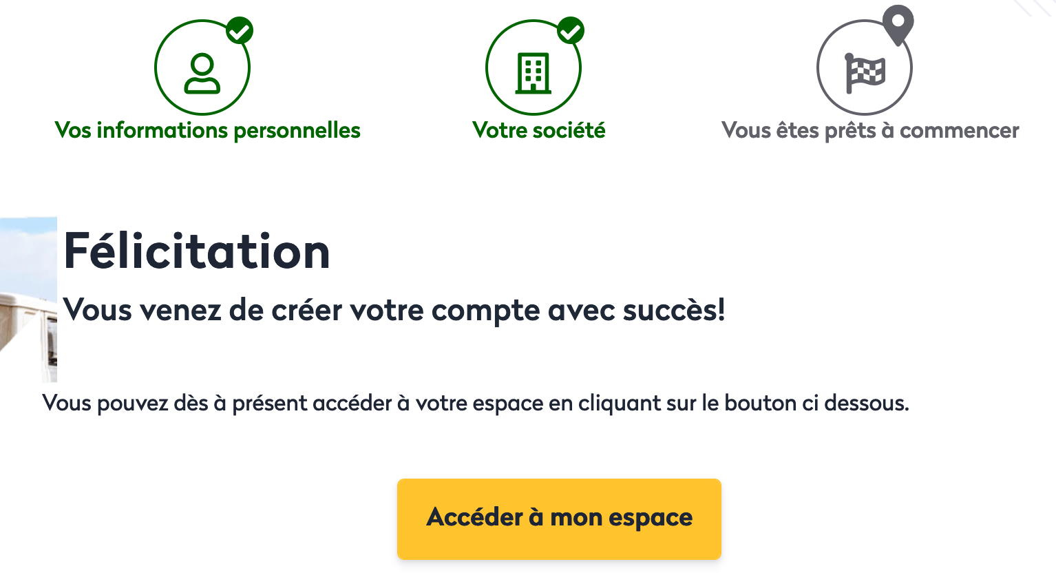 - Finalisez la création du compte en cliquant sur le bouton "C'est bien ma société"